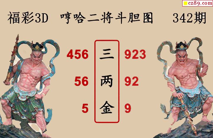 福彩3D2025342期 白鱼舟3D图谜哼哈二将斗胆图