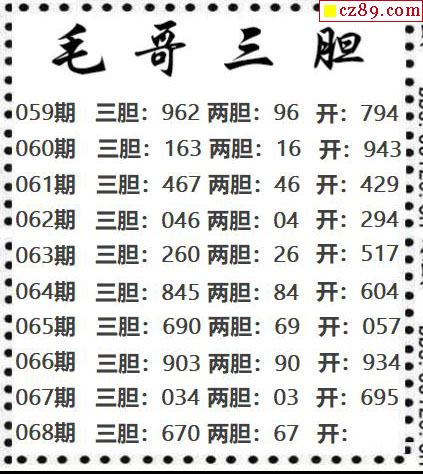 毛哥三胆2026068期3d图谜