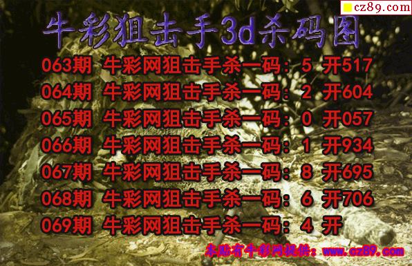 牛彩狙击手杀码2026069期3d图谜(原创)-3d试机号查询_今日3d试机号查询_福彩3d试机号今天_3d试机号口诀_今天3d试机号开机号-福彩网