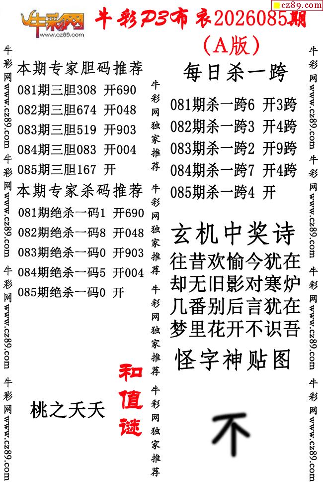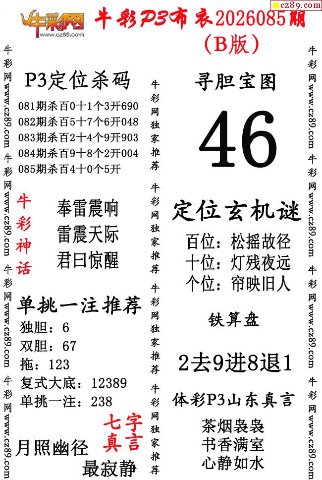 牛彩P3布衣26年085期AB版图谜(精华版)-3d试机号查询_今日3d试机号查询_福彩3d试机号今天_3d试机号口诀_今天3d试机号开机号-福彩网