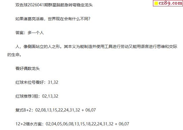 > 26年福彩双色球041期 群星脑筋急转弯定龙头字谜
