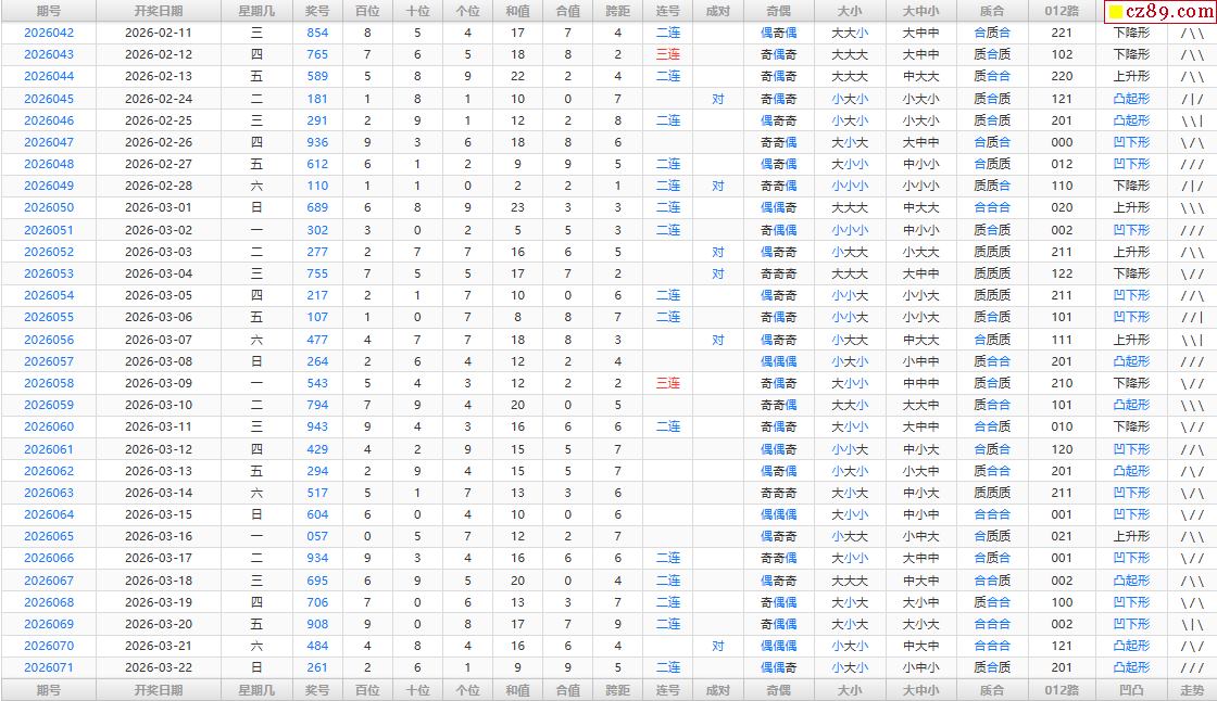 首页 > 福彩3D预测 > 26年072期福彩3D综合统计表