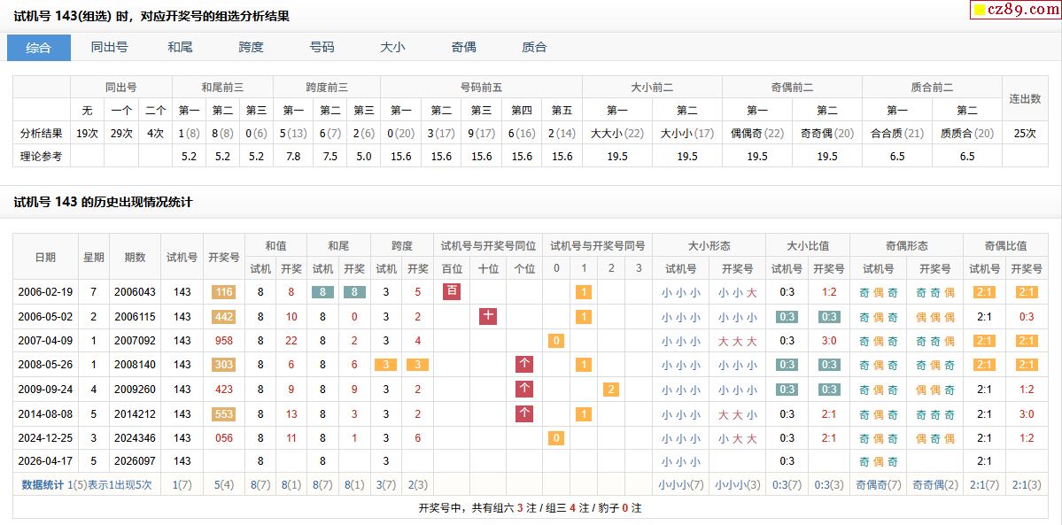 097期福彩3D试机号143对应开奖号的组选分析结果-3d试机号查询_今日3d试机号查询_福彩3d试机号今天_3d试机号口诀_今天3d试机号开机号-福彩网